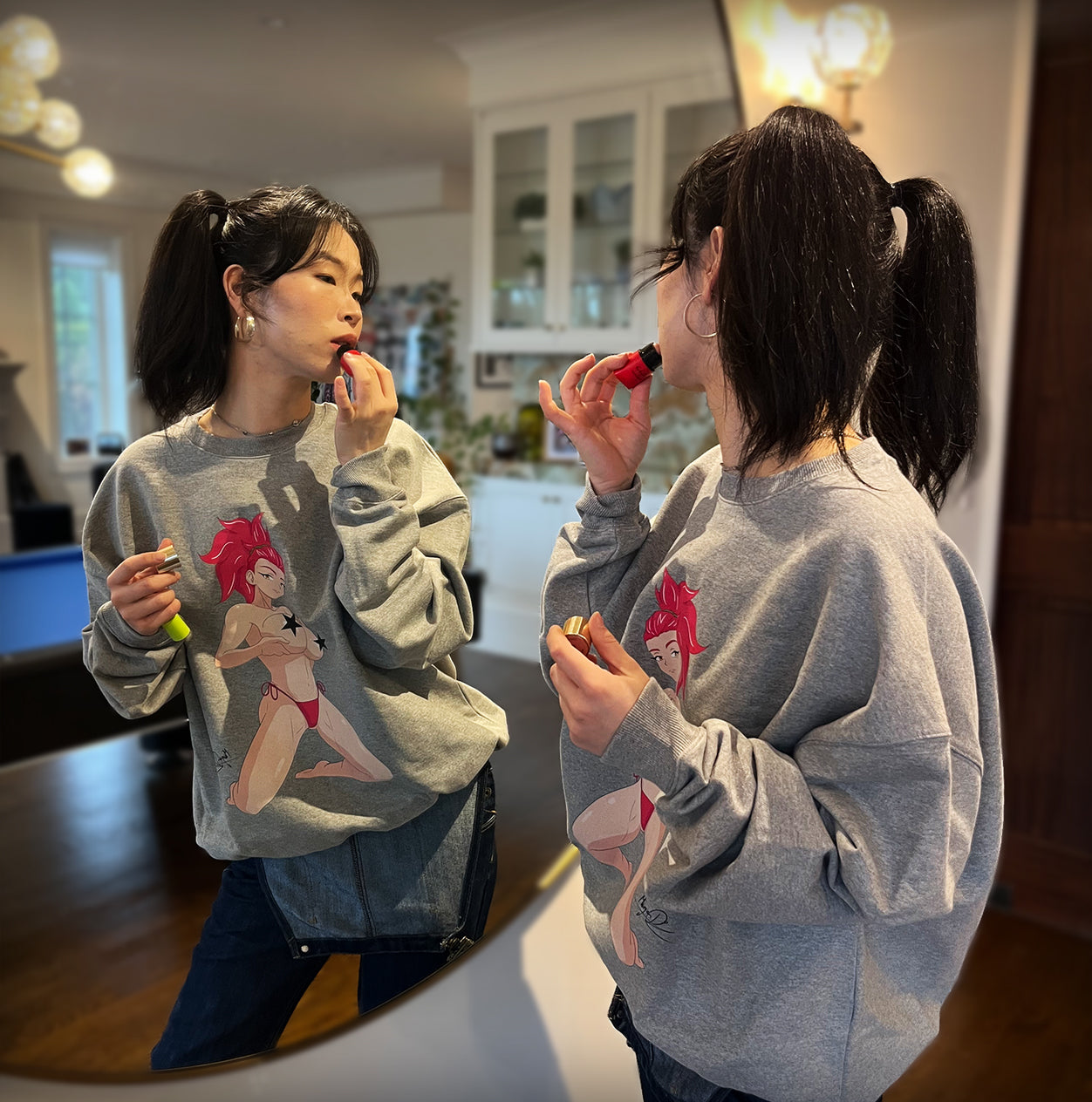 Embrace the bold statement of our Bikini Girl T-shirt featuring hand-drawn graphics screen-printed with water-based ink. Guaranteed to capture attention, whether you're out socializing with friends or unwinding on a casual day at home.